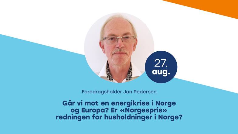 Jan Pedersen (f. 1950) har arbeidet 48 år i kraftbransjen i mange roller, blant annet som administrerende direktør i Kristiansand Energiverk og konserndirektør i Agder Energi. Fra 2014 til 2019 ledet han Agder Energi sitt Brusselkontor og bidro da i utarbeidelsen av den 4. energipakke i EU. De siste 5 årene har han deltatt i prosjekter som skal styrke forbrukernes rolle i kraft- systemet. Pedersen vil reflektere over begrensninger og muligheter i det norske og i det europeiske energimarkedet. Hva skjer når det innføres fastpris for husholdningene? Hva er mulighetene når vi monterer termostatstyrt varme, elbillader, solpanel og batteri på eiendommen?